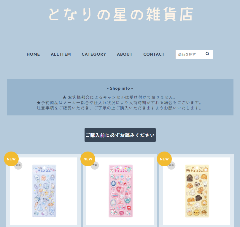 ボンボンドロップシールを販売しているクーリアのオンラインショップがあります。